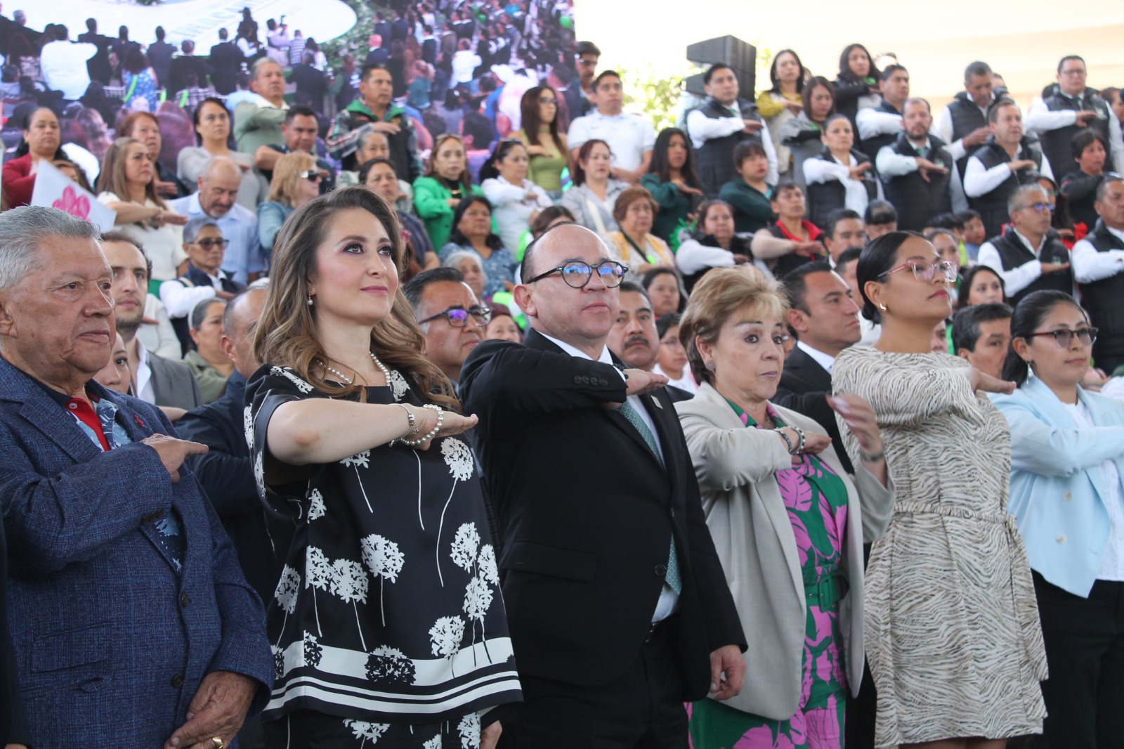 Ante cientos de vecinas y vecinos y Adriana Monserrat Rodríguez, directora de gobierno del Estado de México y representante de la gobernadora, Manuel Vilchis dijo sabíamos que el desafío era grande, pero también sabíamos que contamos con algo más grande que es la fuerza y el respaldo de nuestra gente.