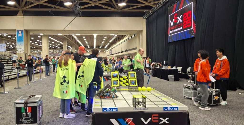 Toluca, Estado de México, 13 de mayo de 2025.- Las y los estudiantes toluqueños del equipo de robótica multidisciplinario ID 94001A MACH-3, han mostrado su talento, dedicación y destreza en el Mundial de Robótica VEX Robotics World Championship, que se lleva a cabo en Dallas,Texas.