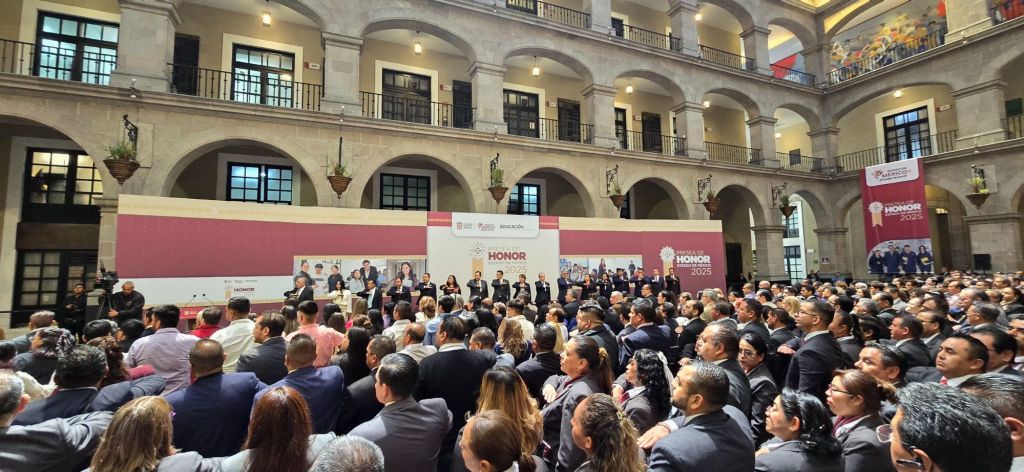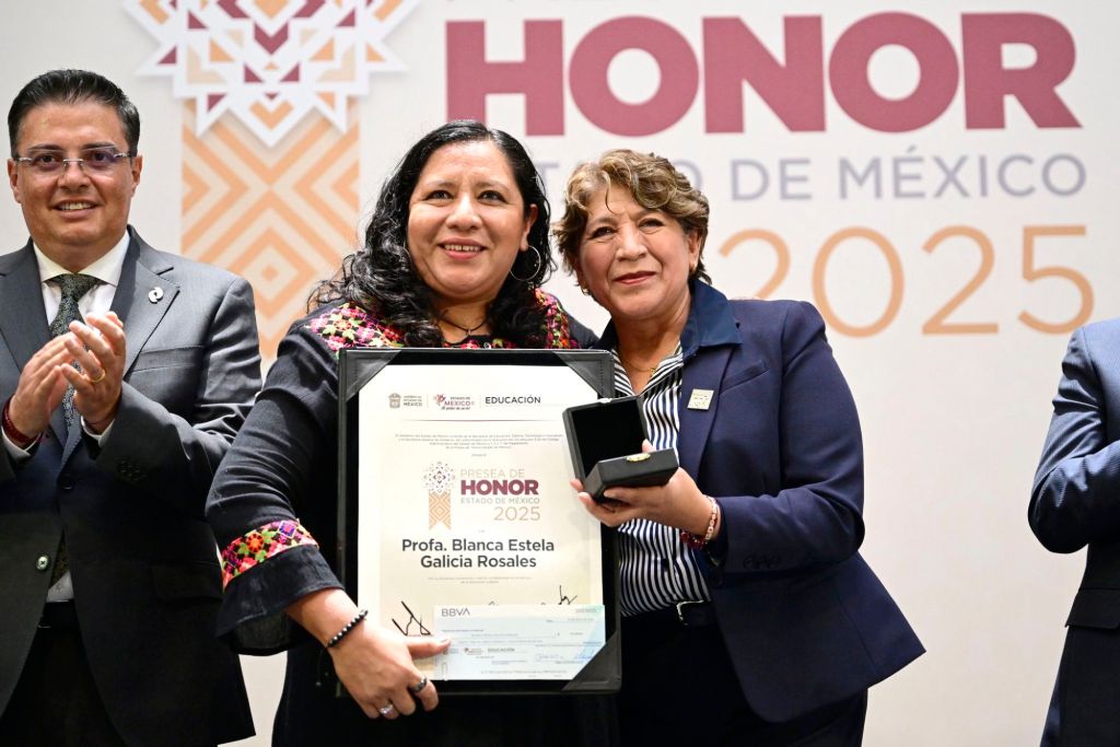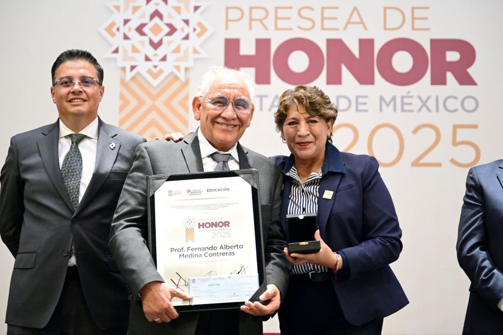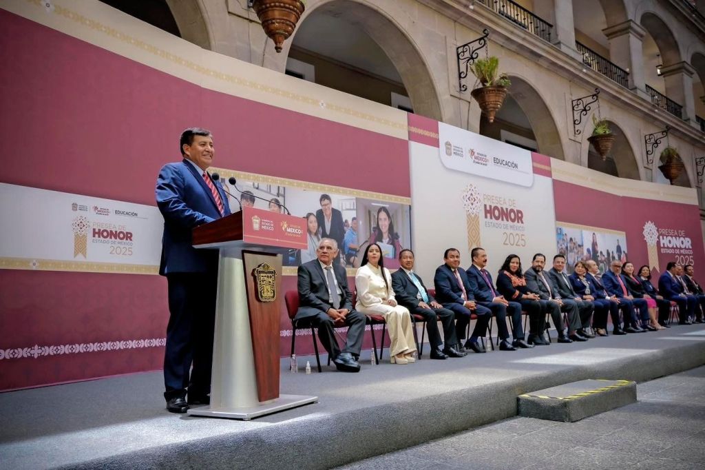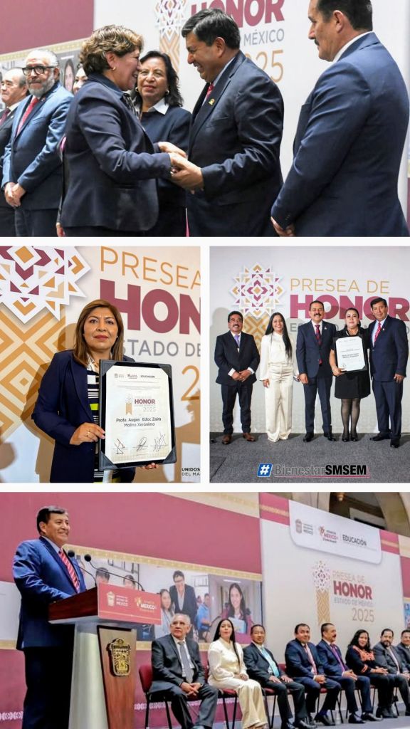 En el acto se entregaron la Presea Honor Estado de México a educadores con 25 años de servicio; la Condecoración “Maestro Altamirano” 2025 a trayectorias docentes con 40 años o más y el Estímulo Laura Méndez de Cuenca a la excelencia en las evaluaciones magisteriales. “Para nosotros la educación, más que una estadística, es un derecho vivo, es una acción presente”, afirmó la mandataria estatal formada en las aulas normalistas.