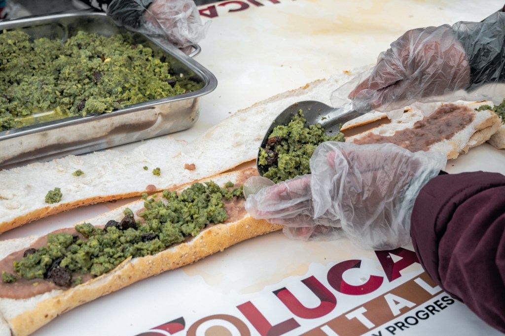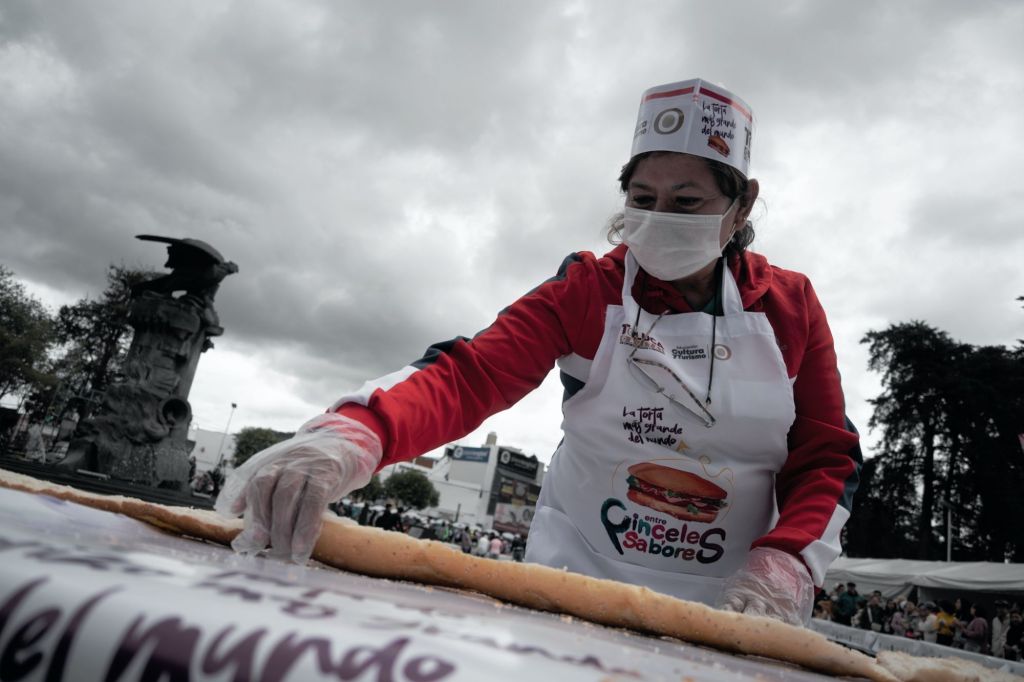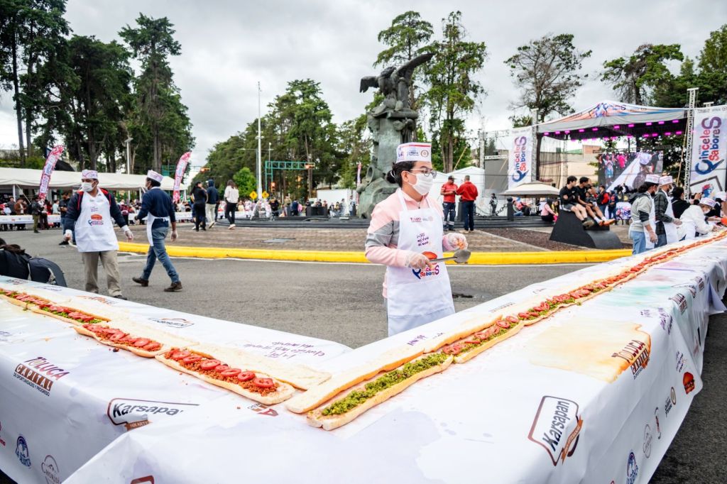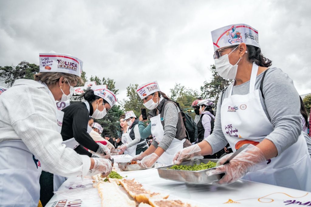 Durante el evento, Victoria Sánchez, Directora General de Educación, Cultura y Turismo, destacó que la elaboración del chorizo fue realizada por seis maestras y maestros del municipio, además detalló que la realización de la torta fue por más de 60 servidores públicos que pusieron 20 kilos de frijoles, 42 de aguacate, 46 de jitomate, 20 de chiles, 60 litros de crema y pan artesanal de 82 metros, para que los asistentes se deleitaran con el sabor toluqueño.