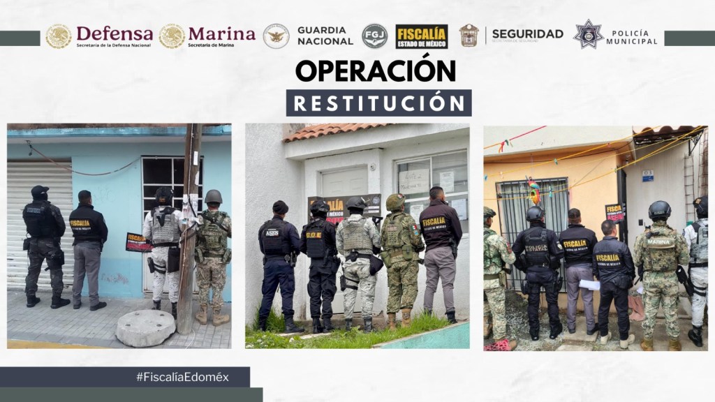 Operación “Restitución” forma parte de la “Estrategia para la Restitución de la Propiedad”, impulsada desde la Mesa de Coordinación para la Construcción de la Paz, que en la entidad encabeza la Gobernadora Delfina Gómez Álvarez, en sus acciones participan la DEFENSA, MARINA, GN, así como del Gobierno del Estado de México a través de la SSEM.