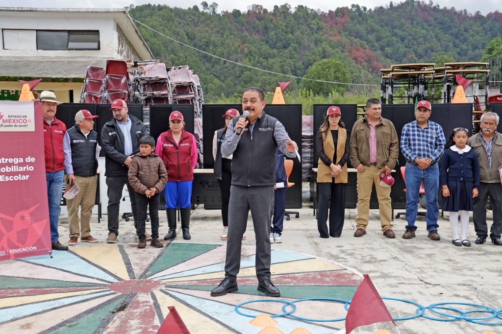 La Primaria “Constitución”, en Temascaltepec, fue sede de la entrega de mobiliario escolar para 77 escuelas, que representa una inversión de 6.63 millones de pesos.