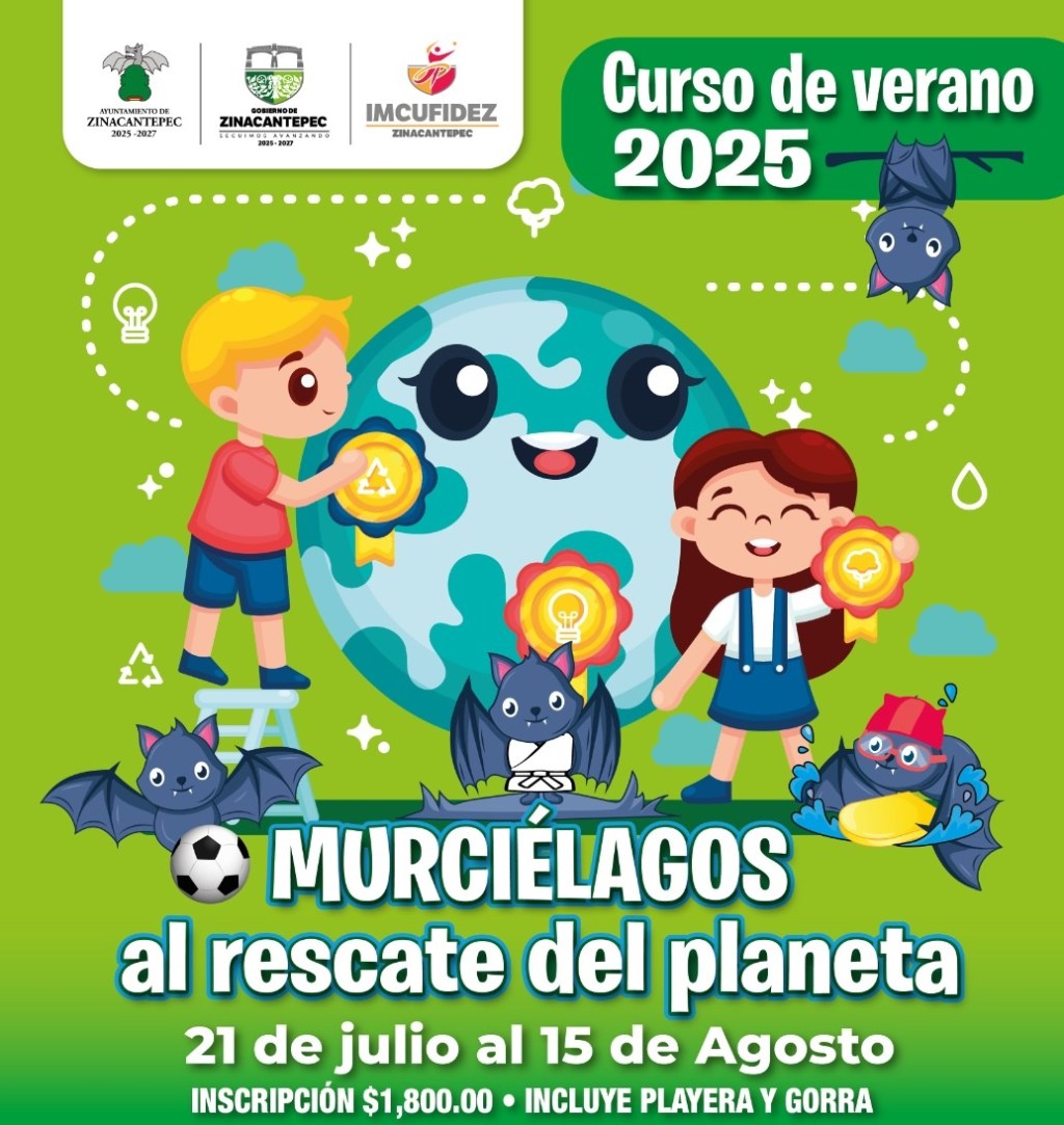 Zinacantepec, Estado de México, junio de 2025. – Con el propósito de promover estilos de vida saludables, el desarrollo físico y emocional, así como la sana convivencia entre niñas y niños del municipio, el Instituto Municipal de Cultura Física y Deporte de Zinacantepec (IMCUFIDEZ) llevará a cabo su curso de verano 2025, bajo el lema “Murciélagos al rescate del planeta”.