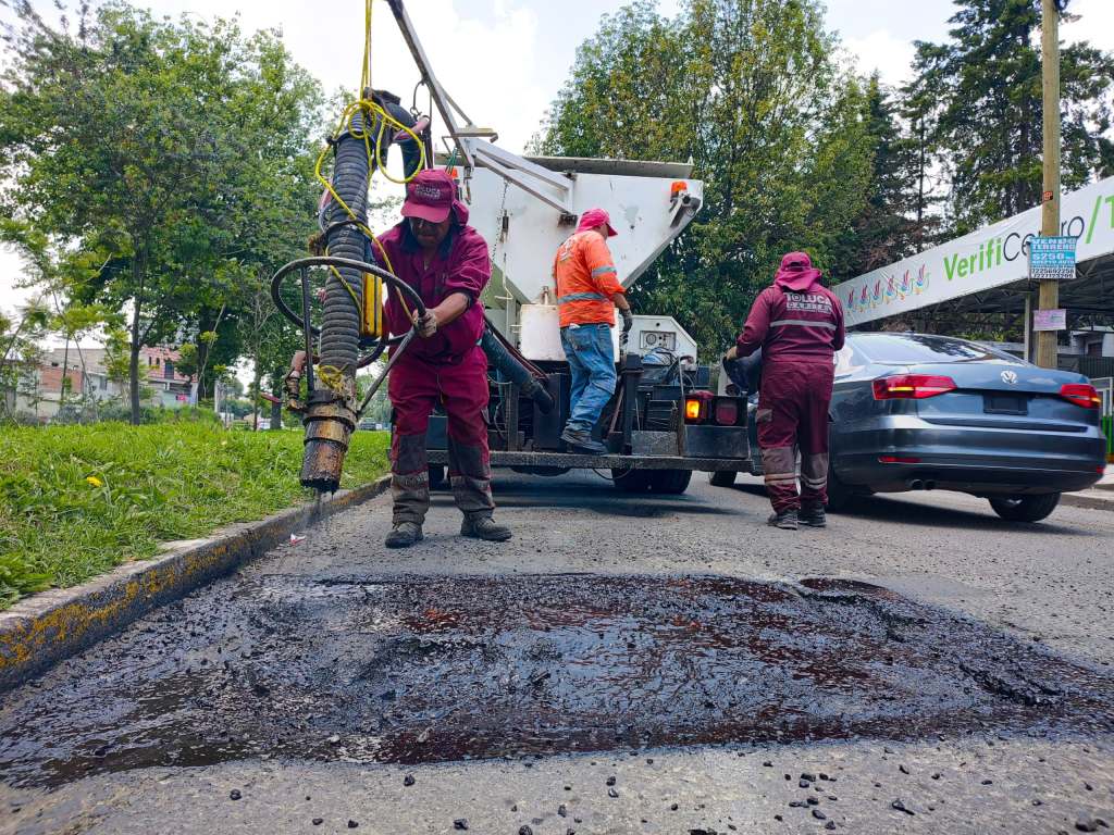 Toluca, Estado de México, 7 de julio de 2025.- Las labores de bacheo avanzan en distintas delegaciones de Toluca, donde cuadrillas municipales trabajan de forma constante para atender reportes ciudadanos y mantener las vialidades en condiciones óptimas.