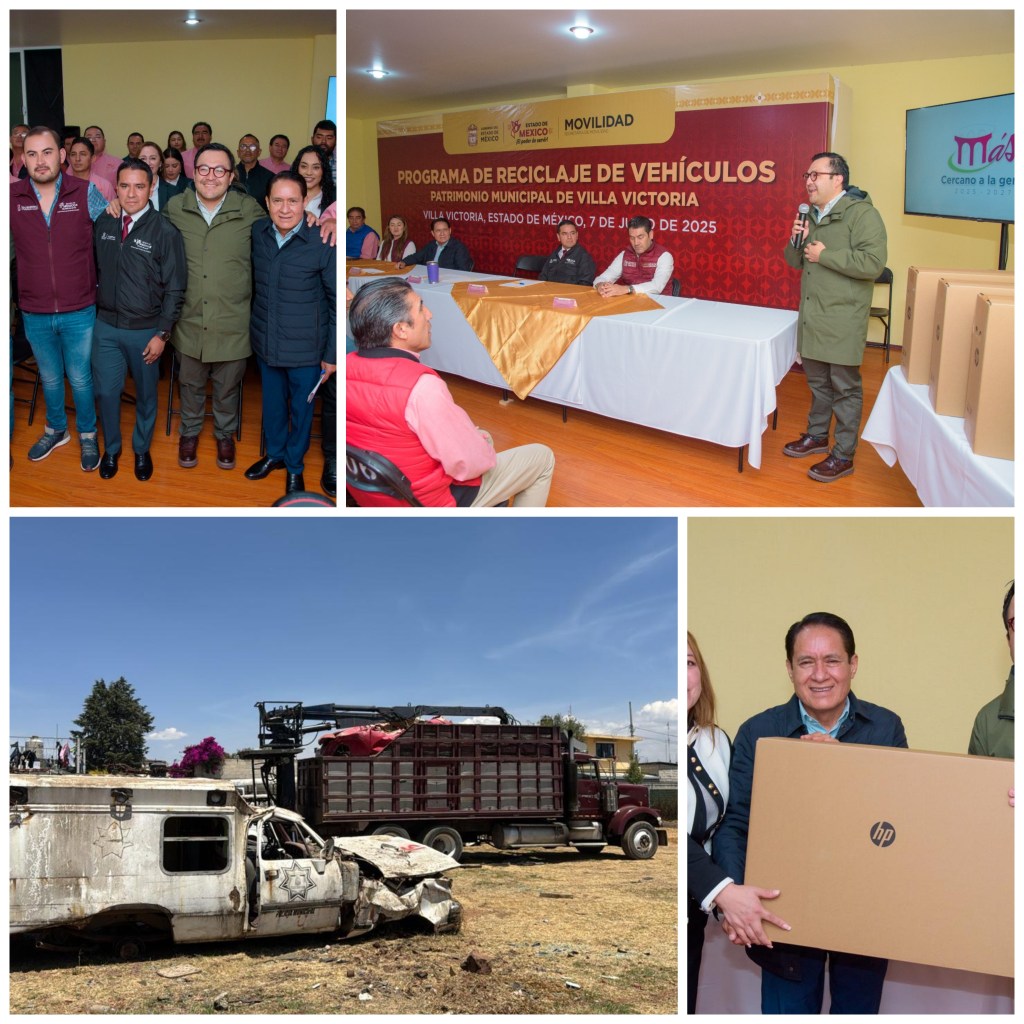 Villa Victoria, Estado de México. – Para promover una administración pública más sustentable y eficiente, el Gobierno del Estado de México lanzó el Programa de Reciclaje de Unidades en Desuso del Patrimonio Municipal, reciclando los primeros 70 vehículos oficiales del municipio de Villa Victoria y generando 77.81 toneladas de metales sólidos reutilizables.