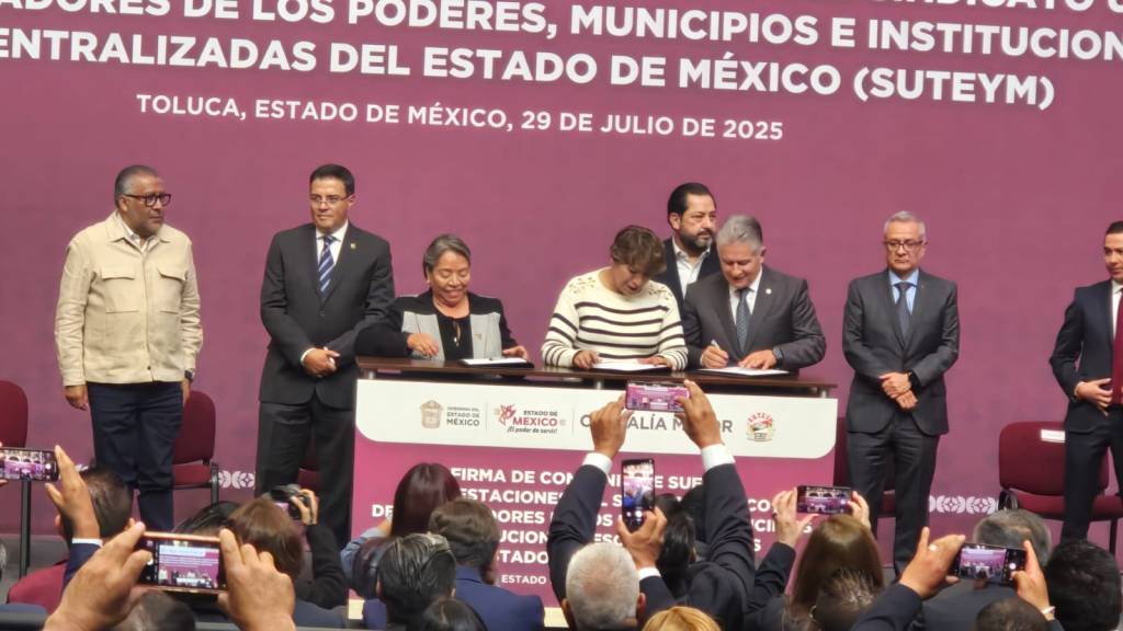 “La firma de este documento simboliza la confianza mutua entre el Gobierno del Estado y el SUTEYM, y da testimonio de una relación basada en el respeto, la responsabilidad y el diálogo permanente. Gracias, maestra Delfina Gómez Álvarez, por escuchar y atender las aspiraciones de quienes conformamos su equipo de trabajo”, expresó el líder sindical.