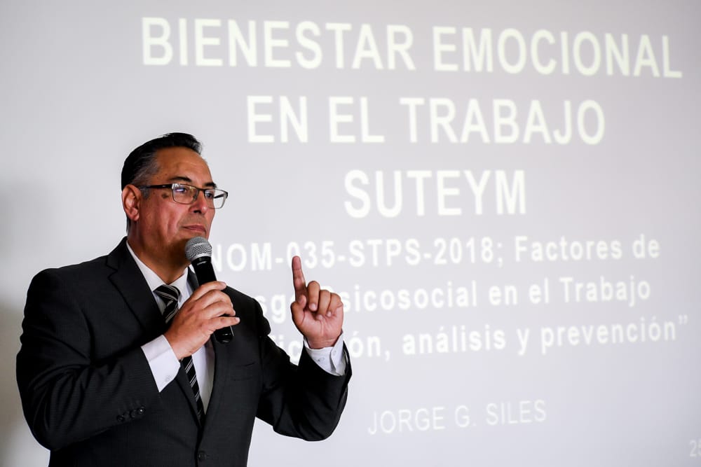 En el marco de la conmemoración del Día Naranja, el Centro para el Desarrollo Humano de las Mujeres Suteymistas (Cedehms) llevó a cabo la conferencia “Bienestar emocional y NOM 035-STPS-2018”, impartida por el especialista Jorge Gutiérrez Siles.