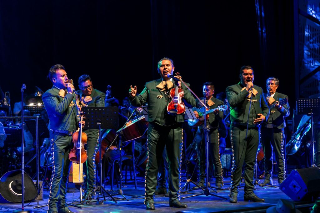 Ataviados con trajes típicos mexicanos, los 88 músicos de la OFiT, bajo la dirección del maestro Gerardo Urbán y Fernández, estuvieron acompañados por el Mariachi Ángeles de Calimaya y por la potente voz de la cantante Karina Pegueros, quien emocionó e hizo cantar al público con su interpretación.
