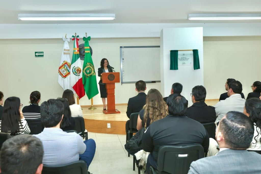 Como parte de esta celebración, se develó la placa del auditorio del CEMAFyD, que llevará como nombre “Dr. Héctor Manuel Tlatoa Ramírez”, en reconocimiento a la labor del académico universitario.