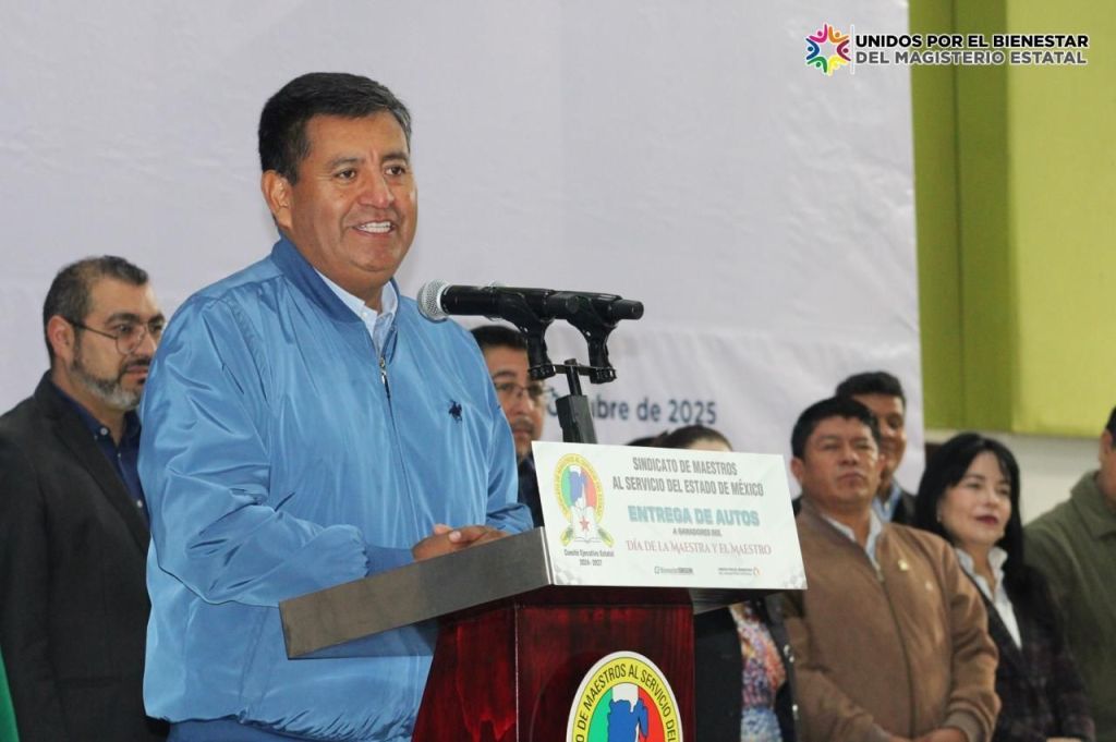 Durante su mensaje, el líder sindical agradeció a la Gobernadora Delfina Gómez Álvarez y al titular de la Secretaría de Educación, Ciencia, Tecnología e Innovación, Miguel Ángel Hernández Espejel, por el respaldo permanente que ha permitido fortalecer los programas de apoyo y estímulo al magisterio estatal.