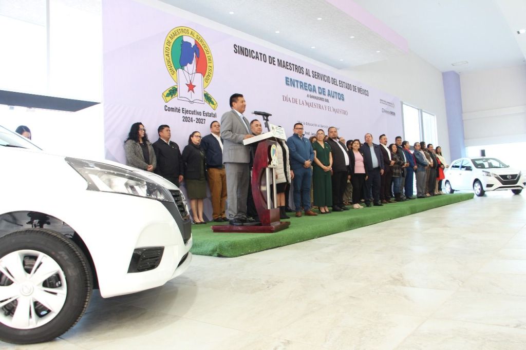 Toluca, Estado de México, 19 de octubre de 2025. – El Sindicato de Maestros al Servicio del Estado de México (SMSEM) concluyó la entrega de 125 automóviles Nissan March modelo 2025, correspondientes a los premios mayores de las rifas realizadas durante el festejo del Día del Maestro 2025 en las 14 regiones sindicales.