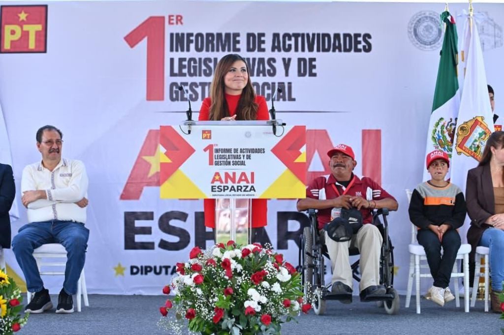 Toluca, Estado de México, 26 de Octubre 2025.- Al agradecer la confianza de las 84 mil personas que votaron por ella para ser su representante en la LXII Legislatura mexiquense y poder servir a toda la población del estado, la diputada Yareli Anai Esparza Acevedo (PT) rindió su Primer Informe de Actividades Legislativas y de Gestión Social, en el que resaltó la presentación de iniciativas en materia de justicia, migración y oportunidades laborales para jóvenes.