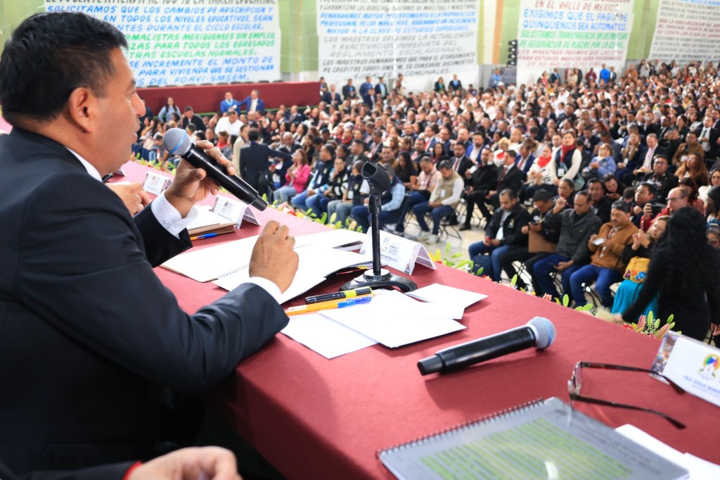 En las instalaciones de Santa Cruz Atzcapotzaltongo y con la presencia de más de 4 mil 700 delegadas, delegados y representantes sindicales de las 14 regiones, el Secretario General, destacó los resultados alcanzados durante su primer año de gestión, producto del diálogo, la gestión y la unidad sindical.