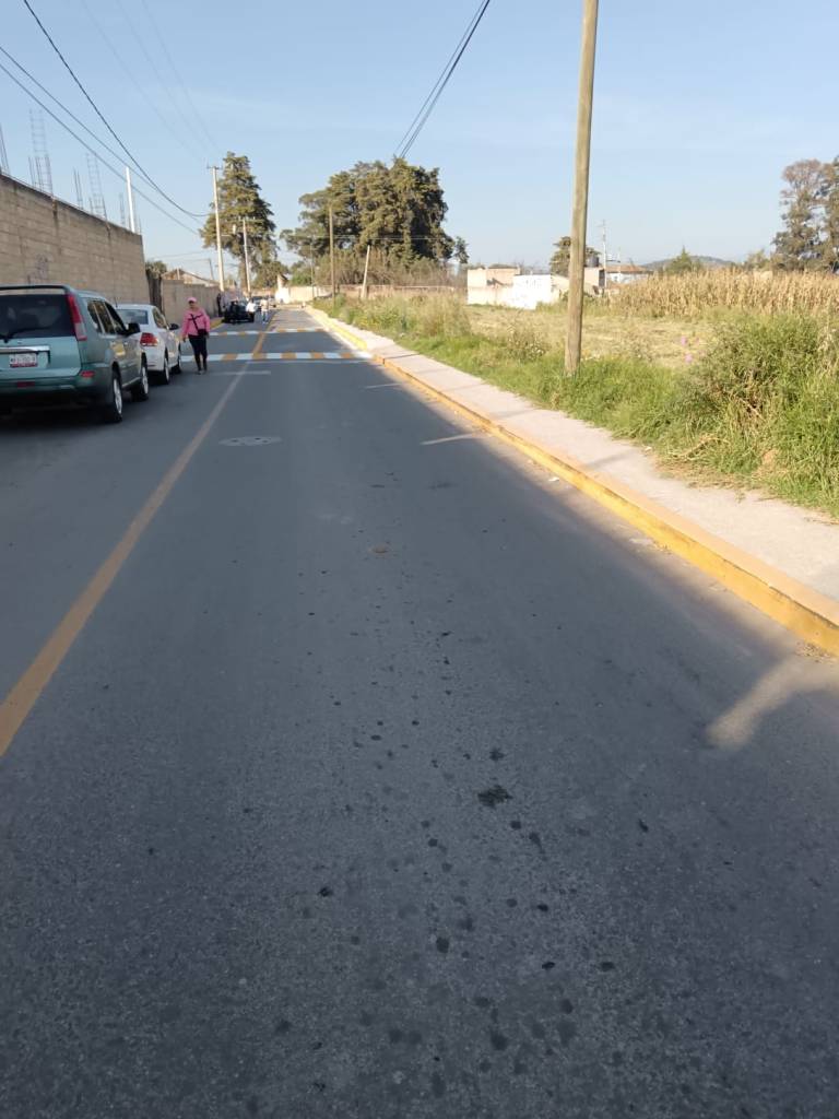 La obra consta de una pavimentación de 1,690 metros cuadrados con carpetas asfáltica de 7 centímetros de espesor en una longitud de 280 metros lineales; la construcción de 520 metros lineales de guarniciones y banquetas.
