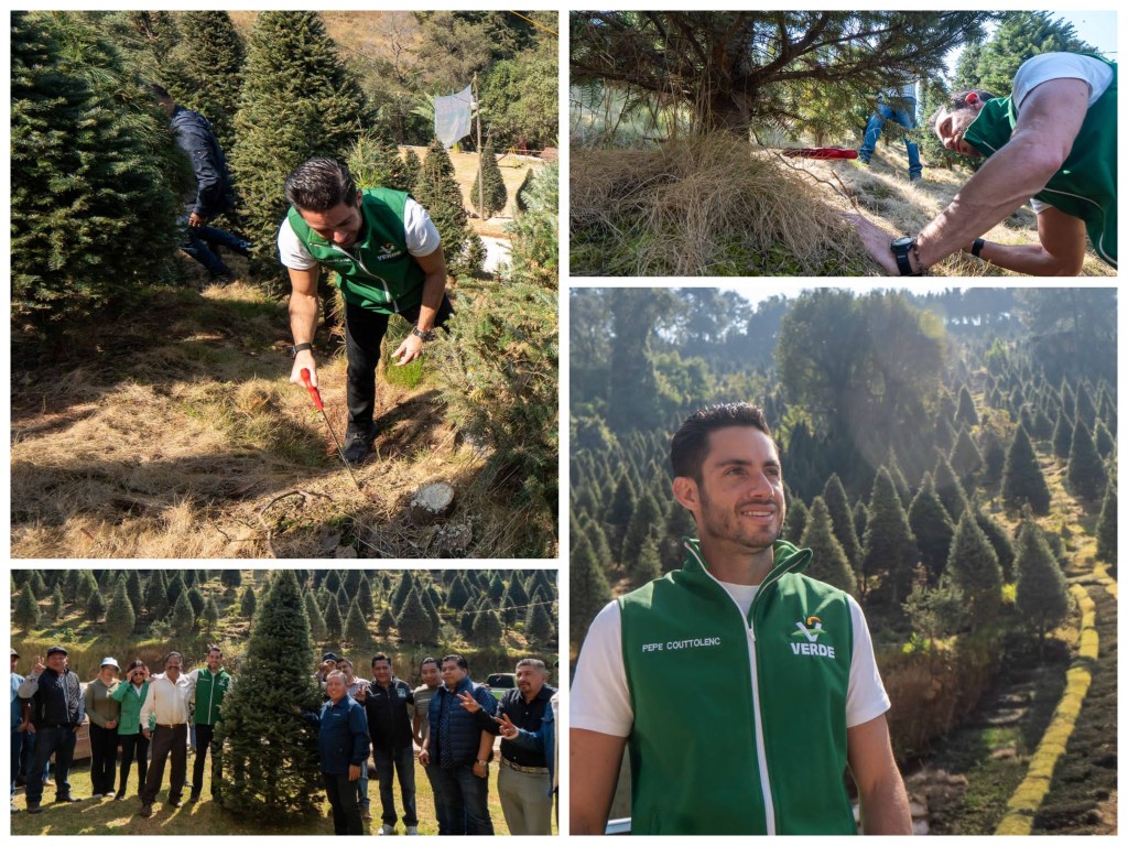 Xonacatlan, Estado de México a 17 de Noviembre 2025.- Con el fin de promover prácticas forestales responsables e impulsar la economía de las comunidades productoras del Estado de México, el dirigente estatal del Partido Verde Ecologista de México, José Alberto Couttolenc Buentello, visitó la plantación “La Cuesta” en Xonacatlán, donde se realizó el primer corte de árboles de Navidad de la temporada.