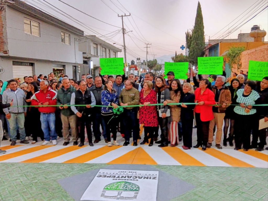 Zinacantepec, Estado de México, 24 de noviembre de 2025.- Manuel Vilchis Viveros, presidente municipal de Zinacantepec, entregó a las y los vecinos de Zamarrero y La Joya la pavimentaron de la calle Aztecas, sistema de drenaje y el alumbrado público, beneficiando a miles de habitantes de una de las zonas más pobladas del municipio.