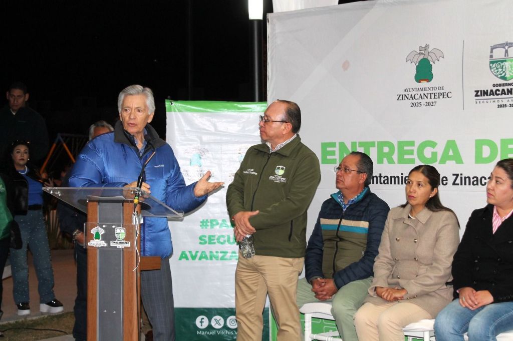 Zinacantepec, Estado de México, 26 de enero de 2025. – La entrega de pavimentación de la calle Antonio Pliego, así como la colocación de 82 luminarias y la construcción del parque recreativo lineal en las inmediaciones de los fraccionamientos Bosques de ICA, mereció el calificativo de obras «bien chulas» por varios vecinos y vecinas que acudieron al evento en el que Manuel Vilchis Viveros, alcalde de Zinacatepec, precisó que su promesa fue cumplida