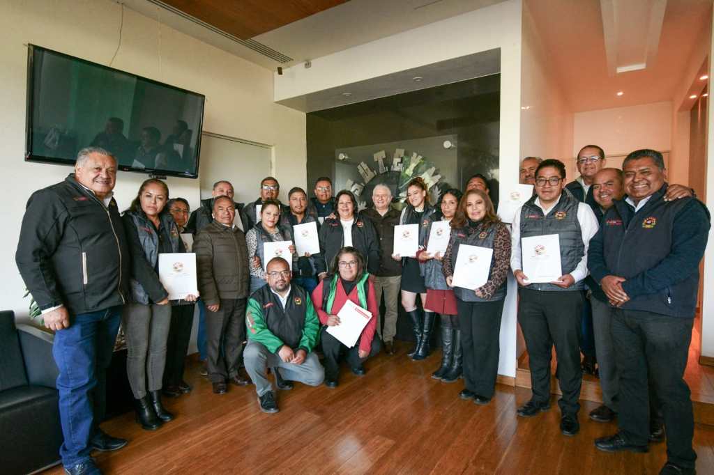 Toluca, Estado de México, 13 de enero de 2026. Servidoras y servidores públicos agremiados al Sindicato Único de Trabajadores de los Poderes, Municipios e Instituciones Descentralizadas del Estado de México (Suteym), con adscripción en dependencias del sector central, y de diferentes puntos de la entidad, recibieron créditos del Fondo de Apoyo a la Vivienda, en las modalidades de autoconstrucción y redención de gravamen.