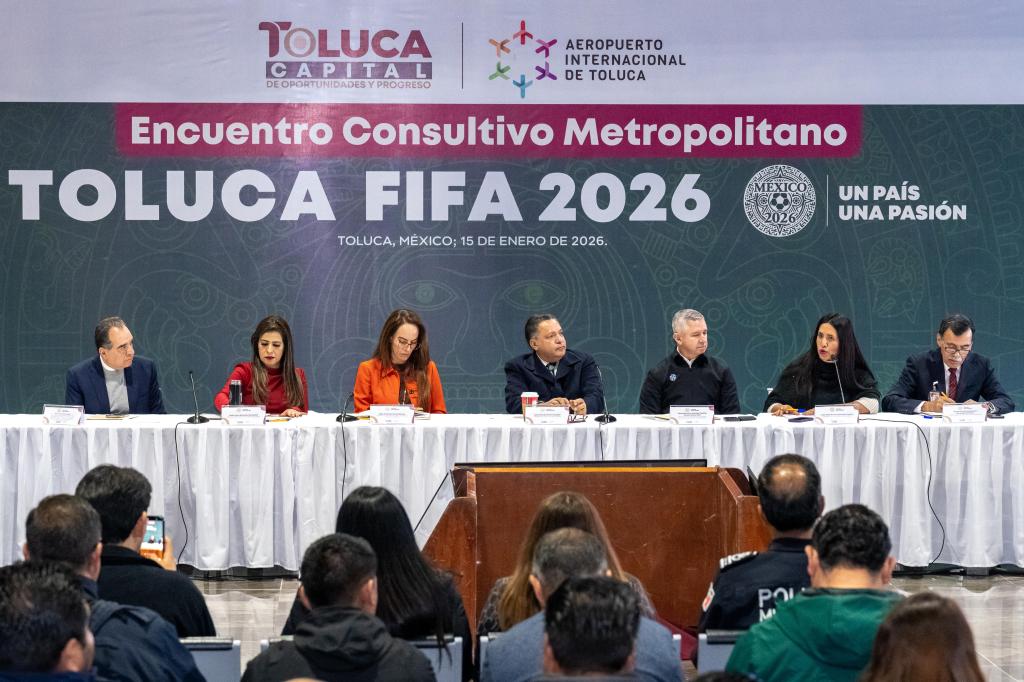 Toluca, Estado de México, 15 de enero de 2026.- El Presidente Municipal, Ricardo Moreno, calificó la llegada de la Copa Mundial FIFA 2026 como una gran oportunidad histórica para demostrar que la Zona Metropolitana del Valle de Toluca es una región apta; organizada, productiva, con plena capacidad para hospedar, tratar y atender a todos los visitantes.