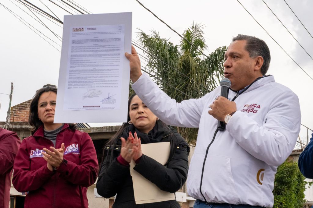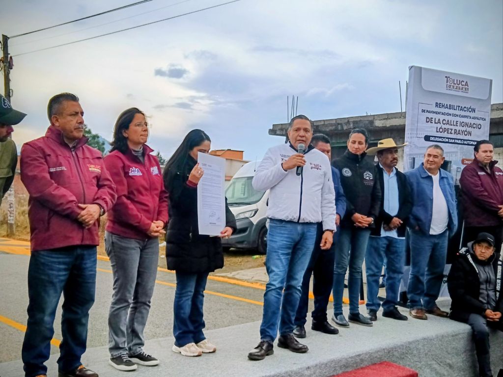 Toluca, Estado de México, 20 de enero de 2027.- En beneficio de alrededor de 20 mil habitantes de la delegación de San Pablo Autopan, el Presidente Municipal de Toluca, Ricardo Moreno, entregó la rehabilitación con carpeta asfáltica de la calle Ignacio López Rayón, conocida como el Camino al Tejocote, principal vía de acceso a la delegación, en el tramo comprendido entre las calles José María Arteaga y 5 de Mayo.