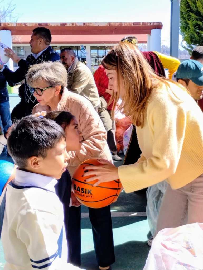 Mexicaltzingo, Estado de México, 27 de enero de 2026.- En la Presidencia Municipal de Mexicaltzingo, “los Reyes Magos dejaron balones de fútbol y basquetbol para las y los estudiantes de la Escuela Primaria Axayacatl”, precisó Saray Benítez Espinoza, presidenta municipal de Mexicaltzingo al visitar el plantel educativo.