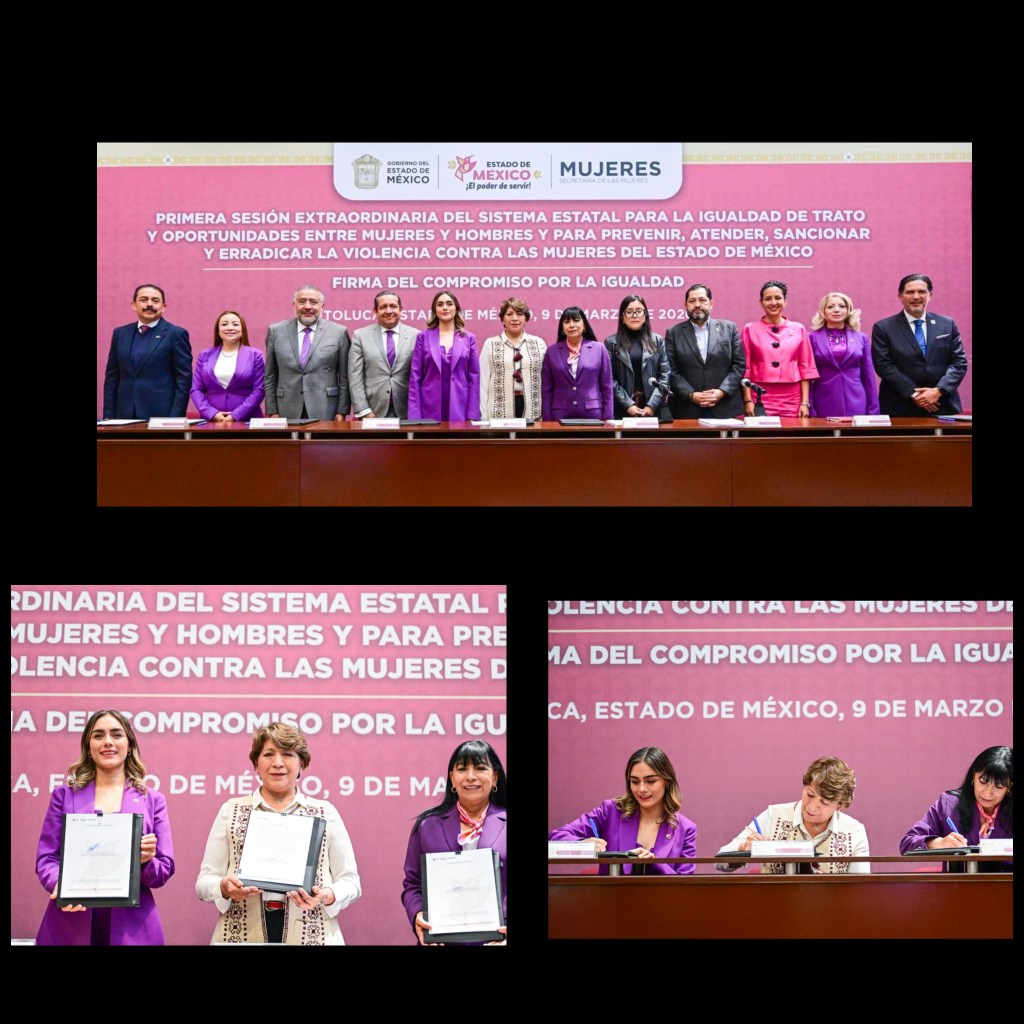 Toluca, Estado de México a 9 de Marzo 2026 .– La construcción de una sociedad más justa no ocurre por inercia, sino por la suma consciente de voluntades. Bajo esa premisa, la Gobernadora Delfina Gómez Álvarez encabezó la firma del Compromiso por la Igualdad con los 125 municipios del Estado de México, un acuerdo que busca transformar las instituciones y garantizar a las mujeres una vida libre de violencia.