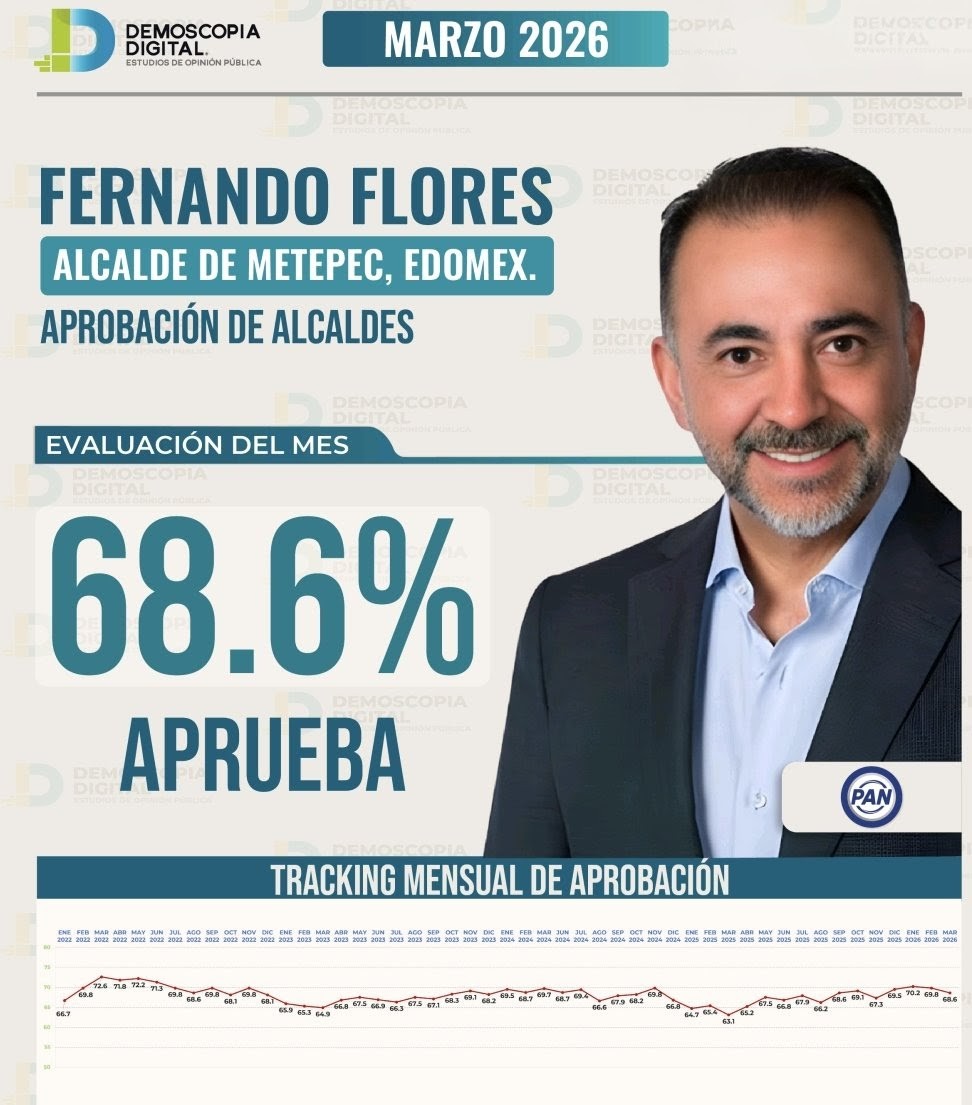Metepec, Estado de México a 6 de Abril 2026. – En política, la aprobación no solo es un número: es el reflejo de una relación compleja entre gobierno y ciudadanía, una especie de termómetro que mide confianza, expectativa y, en ocasiones, esperanza. Bajo esta lógica, el presidente municipal de Metepec, Fernando Flores Fernández, se posiciona como una de las figuras mejor evaluadas del país, al alcanzar un 68.6 por ciento de aprobación ciudadana, de acuerdo con la más reciente encuesta de Demoscopia Digital, difundida por La Jornada.